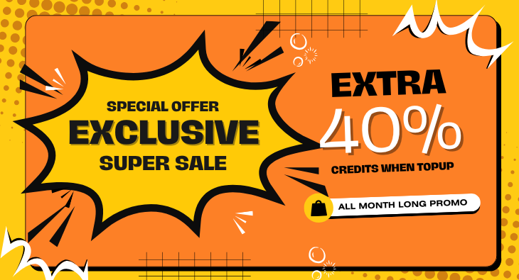 Get 40% extra credits when you top up using promo code 40MONTH.